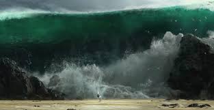 All of them except for Moses and Ramses, that is. Moses dismisses his troops while Ramses ignores his own troops’ abandonment of him, and both ride toward each other with the gigantic wall of water approaching them in the background at high speed. Both of them, as well as all of the fleeing Egyptian army, are engulfed by the huge tsunami. The Egyptian army and all of their horses are shown drifting underwater, dead and drowned. Ramses is swept away. Moses is shown hitting the bottom of the sea and being dragged along, a rock tearing open part of his back, before somehow surfacing, alive and conscious. The next scene shows the Israelites camped along the shore…and Moses is sitting on the beach? I’m wondering how he survived at all, much less finding the strength to swim back to shore. My skepticism is increased mightily when the film then shows Ramses, alive and well and on the opposite shore. This huge wave kills all who are in its path…except for Moses and Ramses?